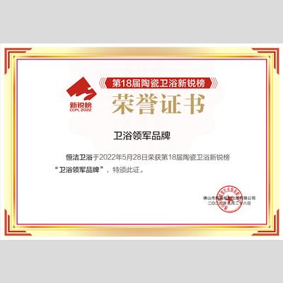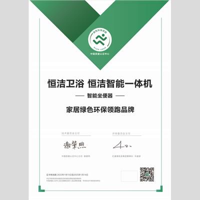 獎 項:家居綠色環保領跑品牌-恒潔智能一體機
