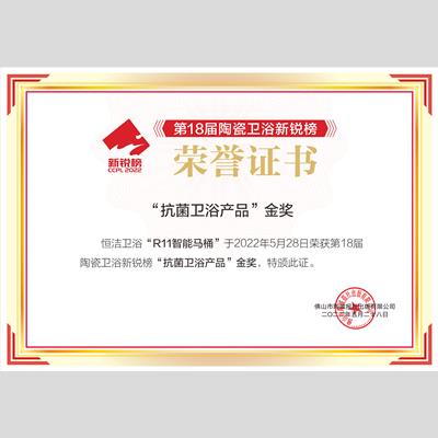 獎 項:抗菌衛浴產品金獎-恒潔R11智能一體機