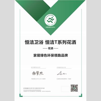 獎 項:家居綠色環保領跑品牌-恒潔T系列花灑