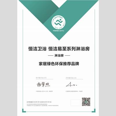 獎 項:家居綠色環保推薦品牌-恒潔易至系列淋浴房