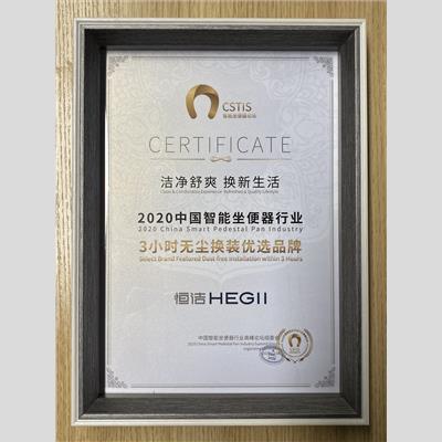 獎 項:2020中國智能坐便器行業(yè)-3小時無塵換裝優(yōu)選品牌