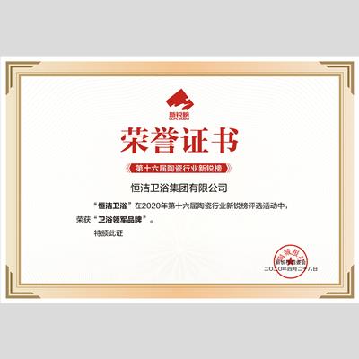 獎 項:衛浴領軍品牌——恒潔