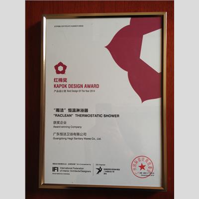 獎 項:2014紅棉獎-產品設計獎 (“雨潔”恒溫淋浴器)