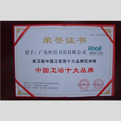 獎 項:第五屆家居風尚榜 中國衛浴十大品牌