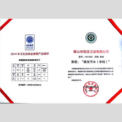 獎 項:H0129D馬桶 2014年衛生潔具坐便器產品測評 最佳節水(單檔)