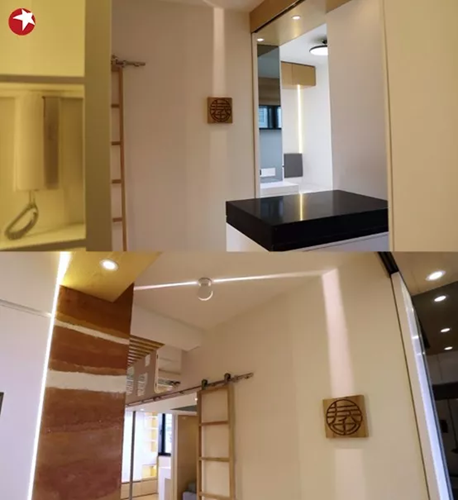 設計師通過采用露開櫥、木格柵屋頂、斜坡頂設計,讓房間聲音得到更好的擴散,使這間小小的唱歌排練廳,在保證最基本的居住需求的同時,還能達到一個較為符合標準的練歌廳需求。
