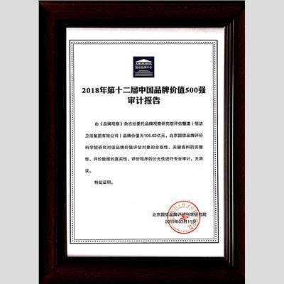 獎 項(xiàng):2018年第十二屆中國品牌價值500強(qiáng)審計(jì)報(bào)告