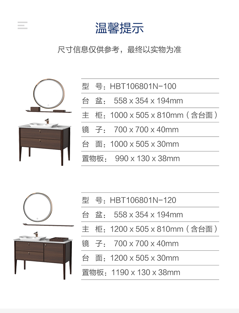 HBT106801N-100 (經典胡桃木色)實木浴室柜