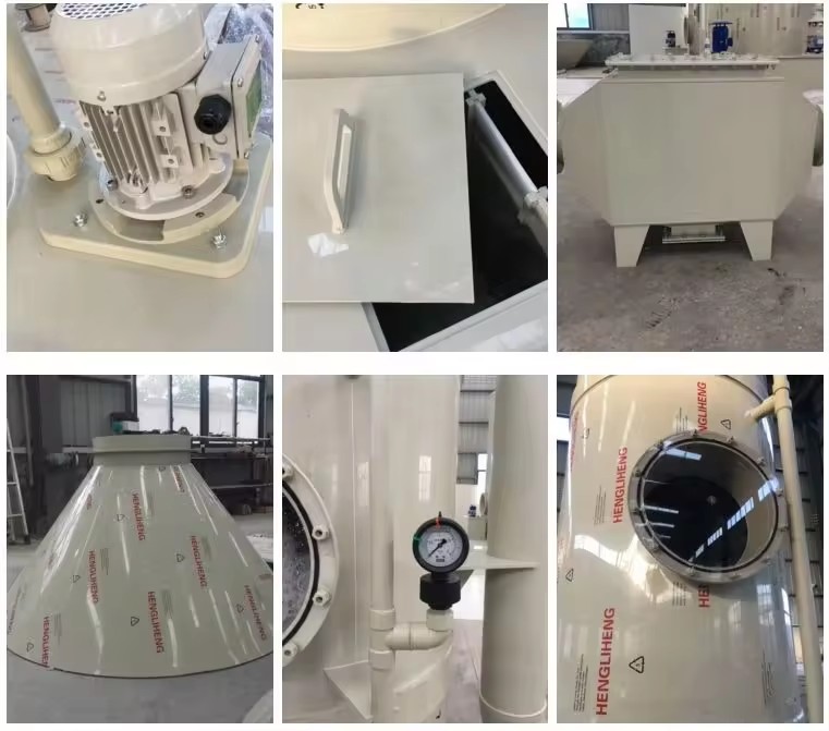 1.噴淋塔體的材料為不銹鋼,鋼板,聚丙烯和玻璃纖維,整體為無分段連接法蘭的纏繞圓柱圓柱體。具體結構由壓力室、儲液罐、填料、噴淋裝置、消泡裝置等組成。