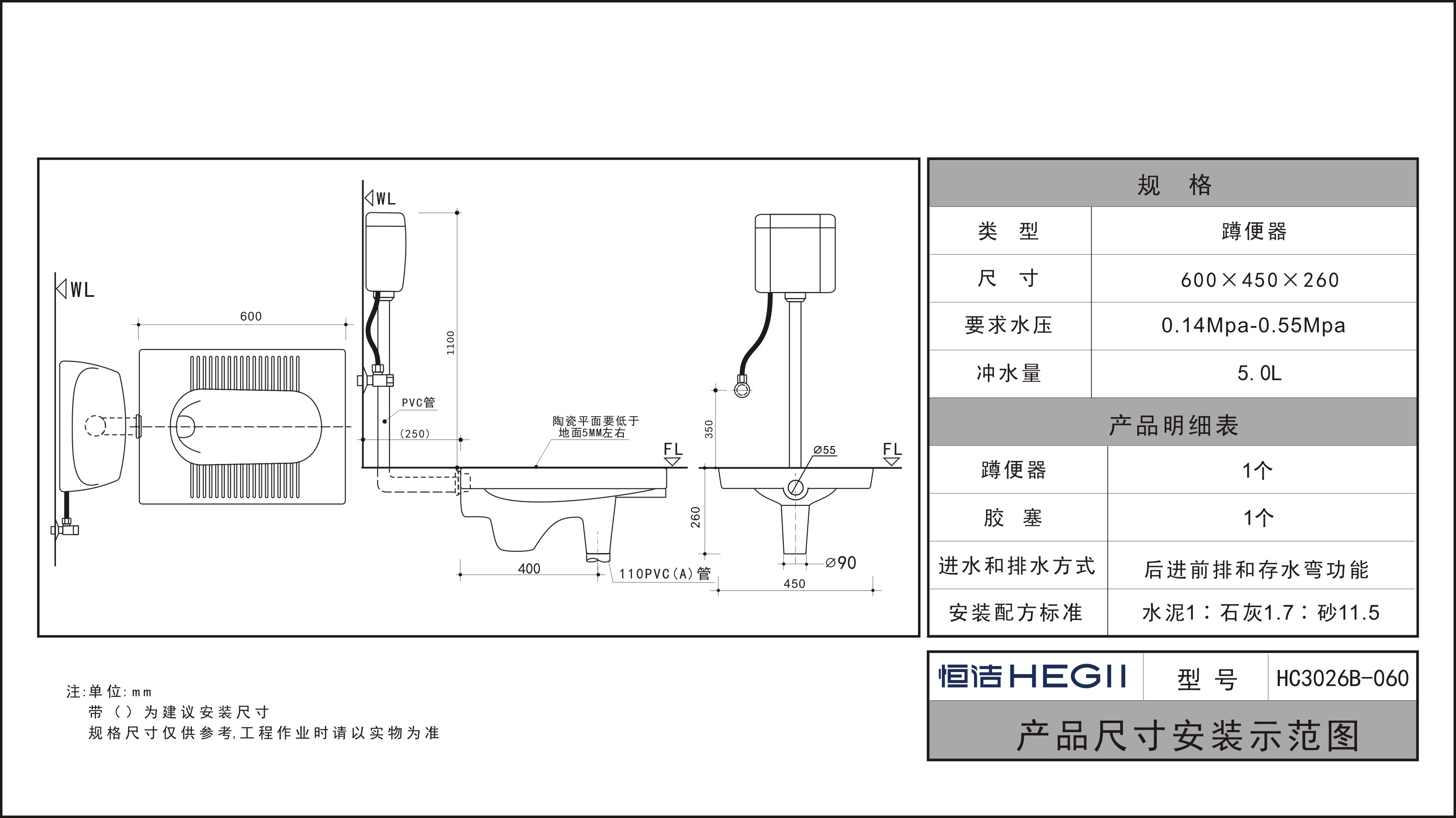 HC3026B-060導流導壓蹲便器