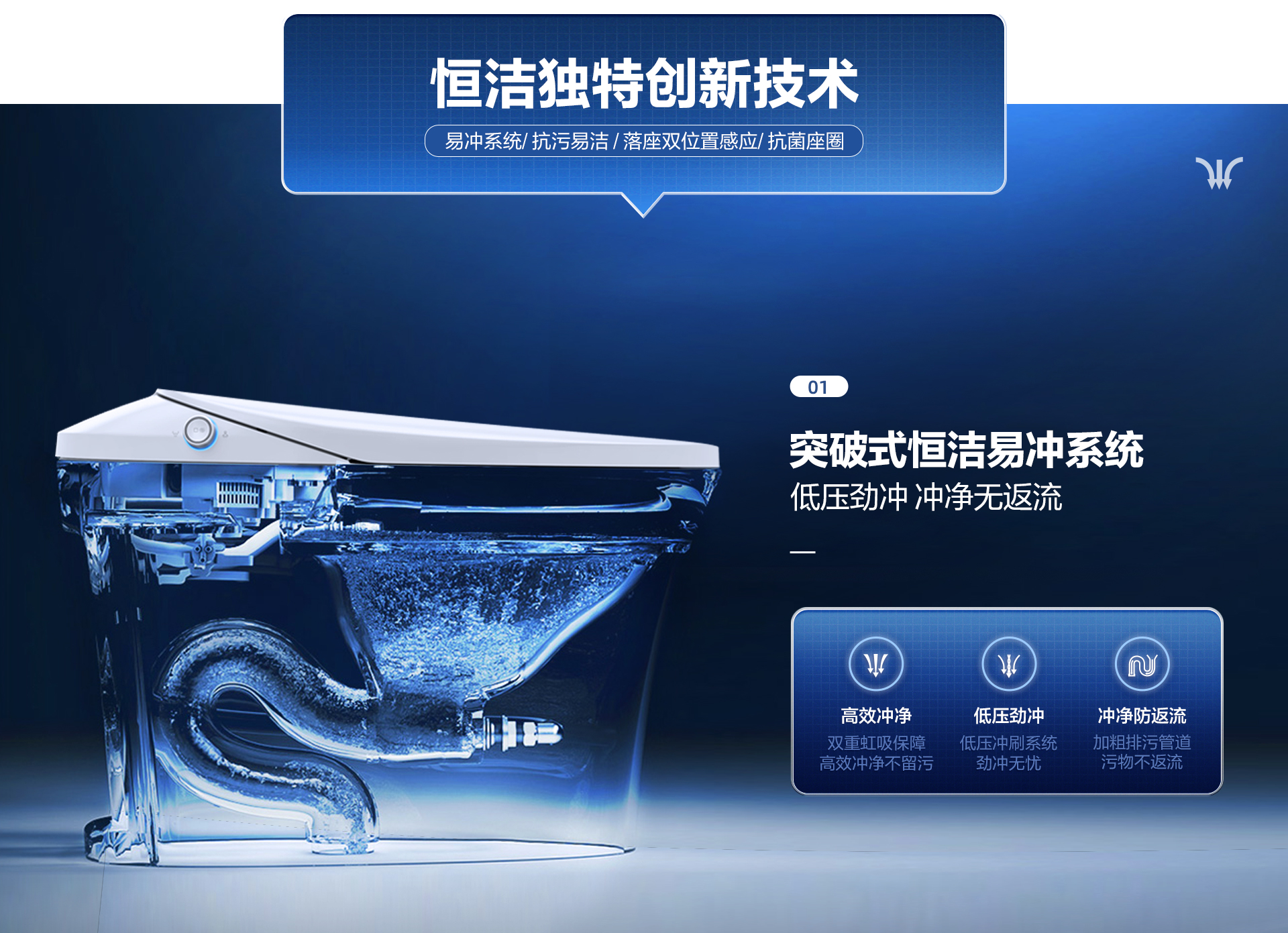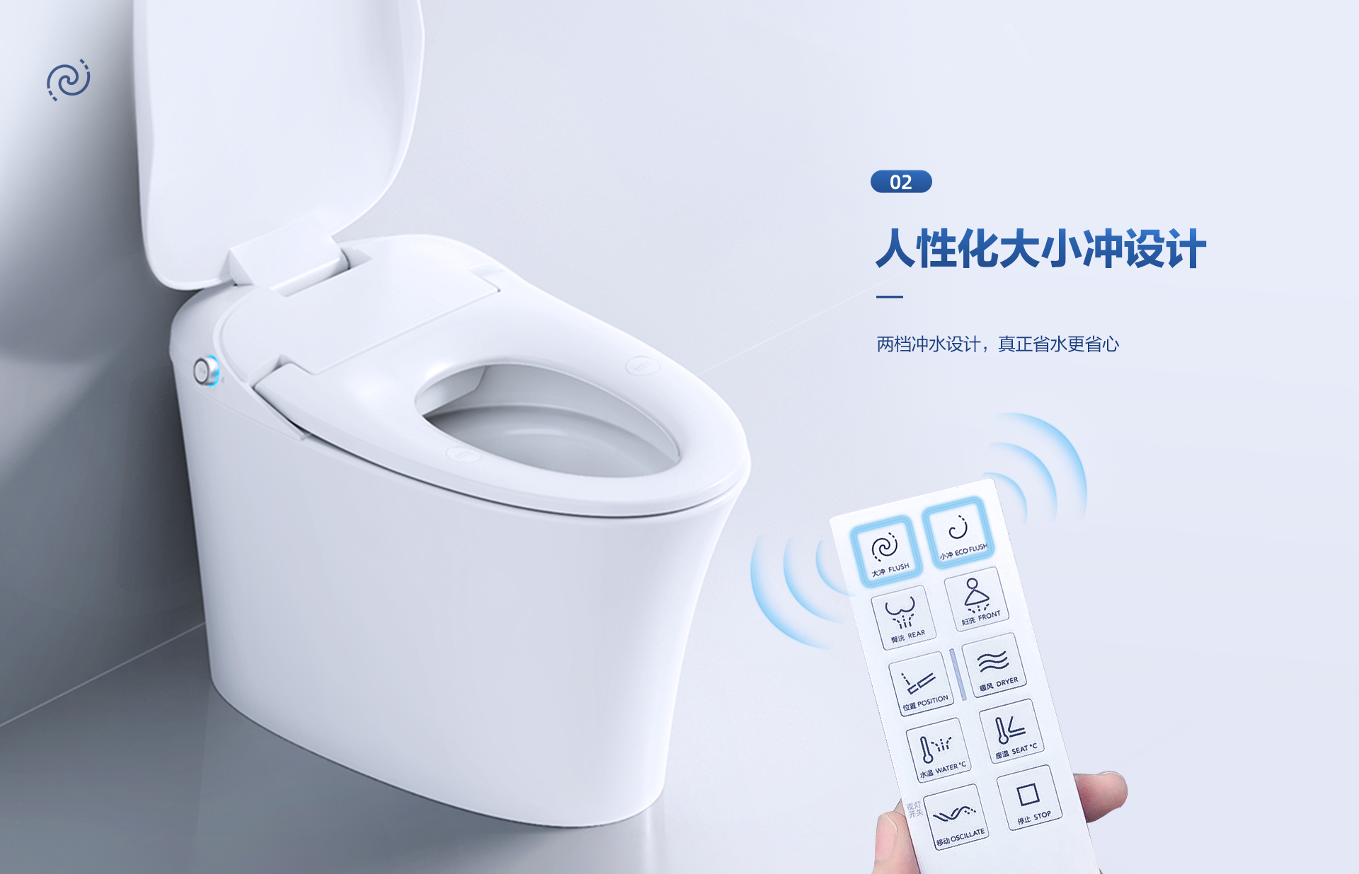 恒潔易沖系統:0.1MPa低壓勁沖,人性化大小沖設計