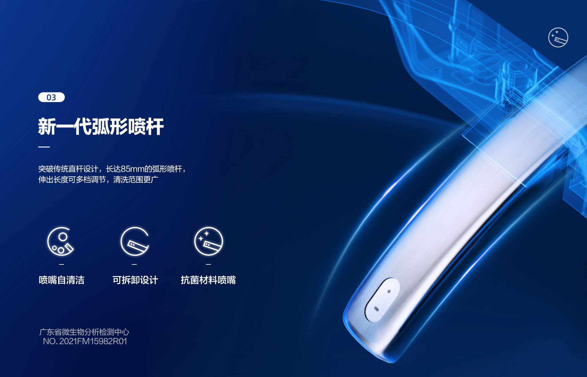 銀離子抗菌座圈和弧形噴槍:SIAA權威認證,抗菌率高達99.99%