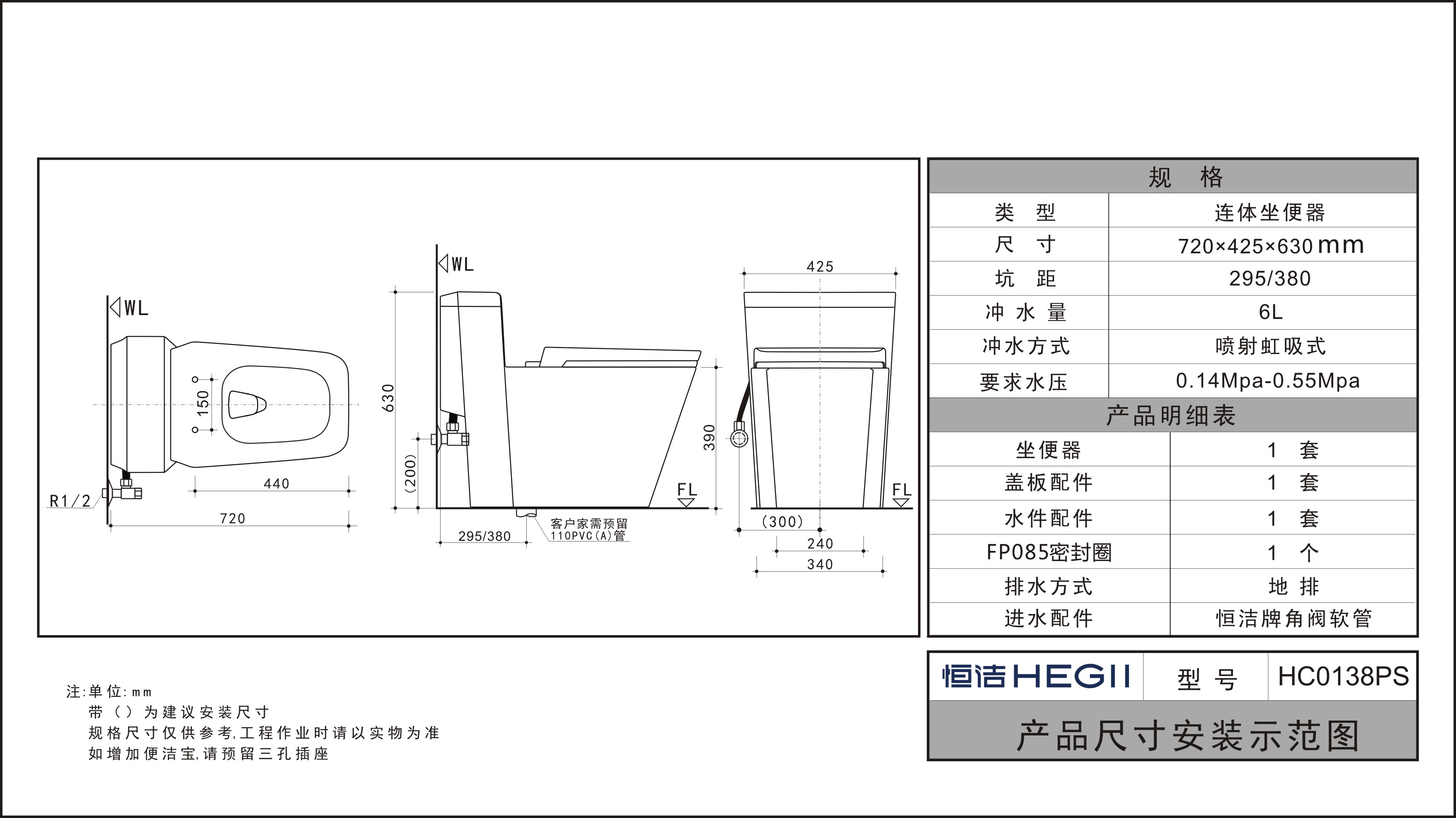 沖水量:6L(側(cè)面單按鍵)