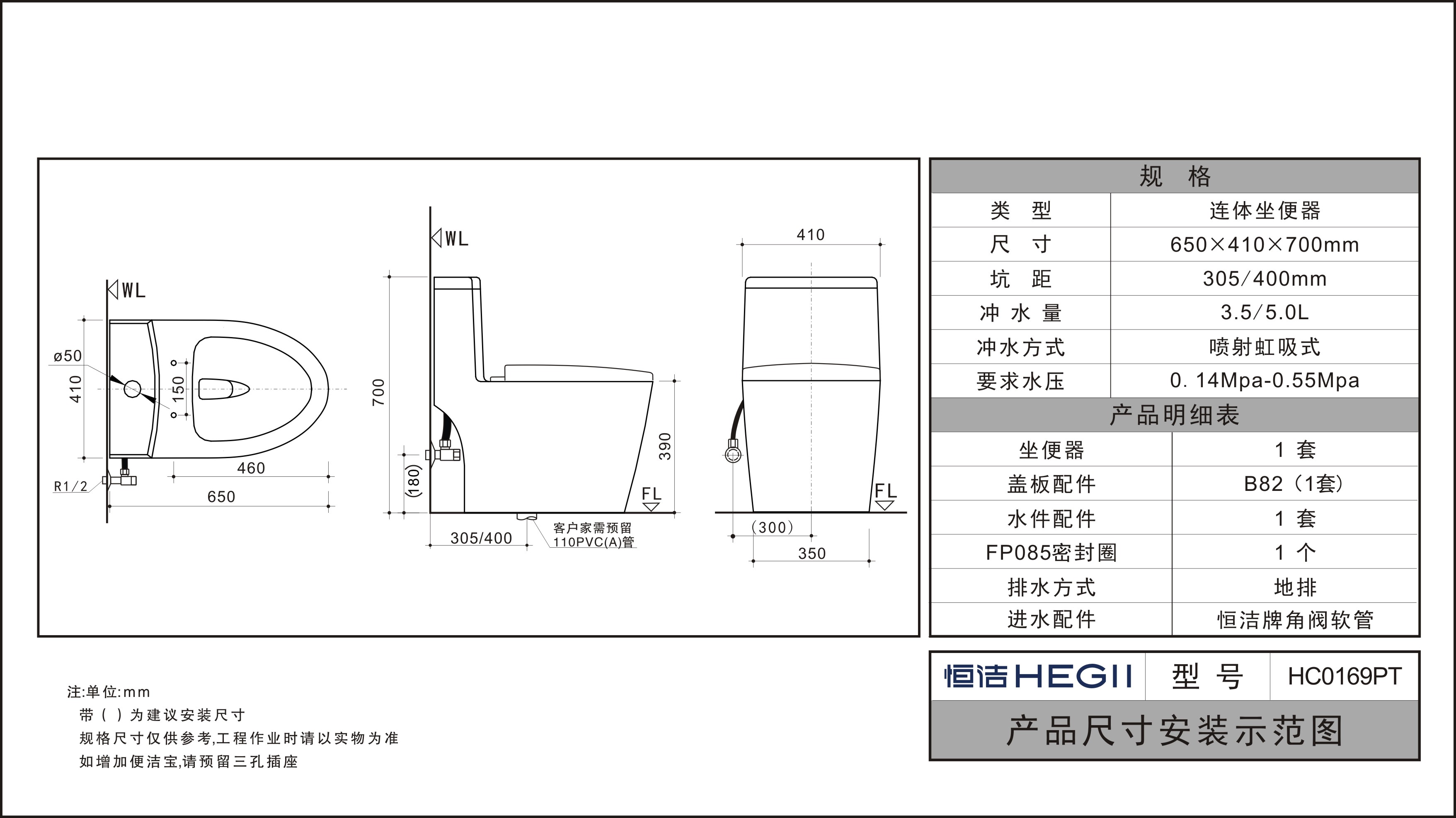坑距:305/400mm